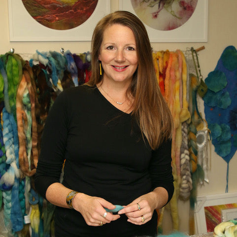 Caroline is passionate about encouraging others to explore their own creative expression and this has led her to develop a range of stand-alone felting kits and Virtual Studio Workshops. She also gives workshops in person throughout New Zealand.